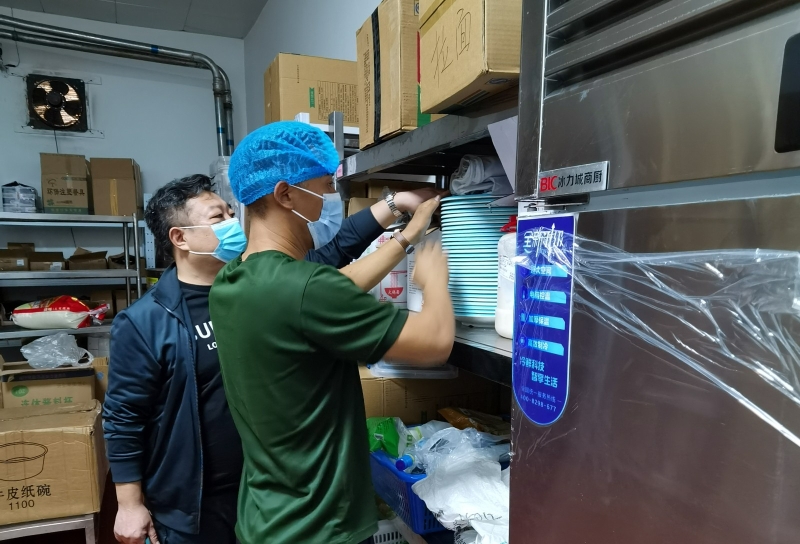 在餐饮中心,检查组深入后厨操作间、食品仓库、洗消间等区域,对食品贮存与加工制作流程、餐具清洗消毒、留样管理制度的落实情况进行了全面检查,严防食品安全事故发生,全力保障师生“舌尖上的安全”。