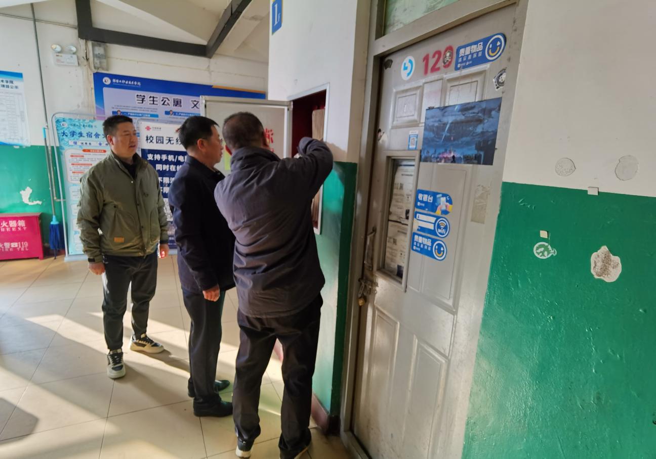 为进一步筑牢校园安全防线,切实保障学生生命财产安全,营造安全、和谐、稳定的学习生活环境,针对秋冬季消防安全隐患高发的特点。10月22、23日,由我校安全工作处牵头,联合学生工作处、后勤管理处等部门工作人员对学生公寓楼开展了全面、细致的安全隐患排查整治行动,此次安全隐患排查由学院副院长张智勇带队。